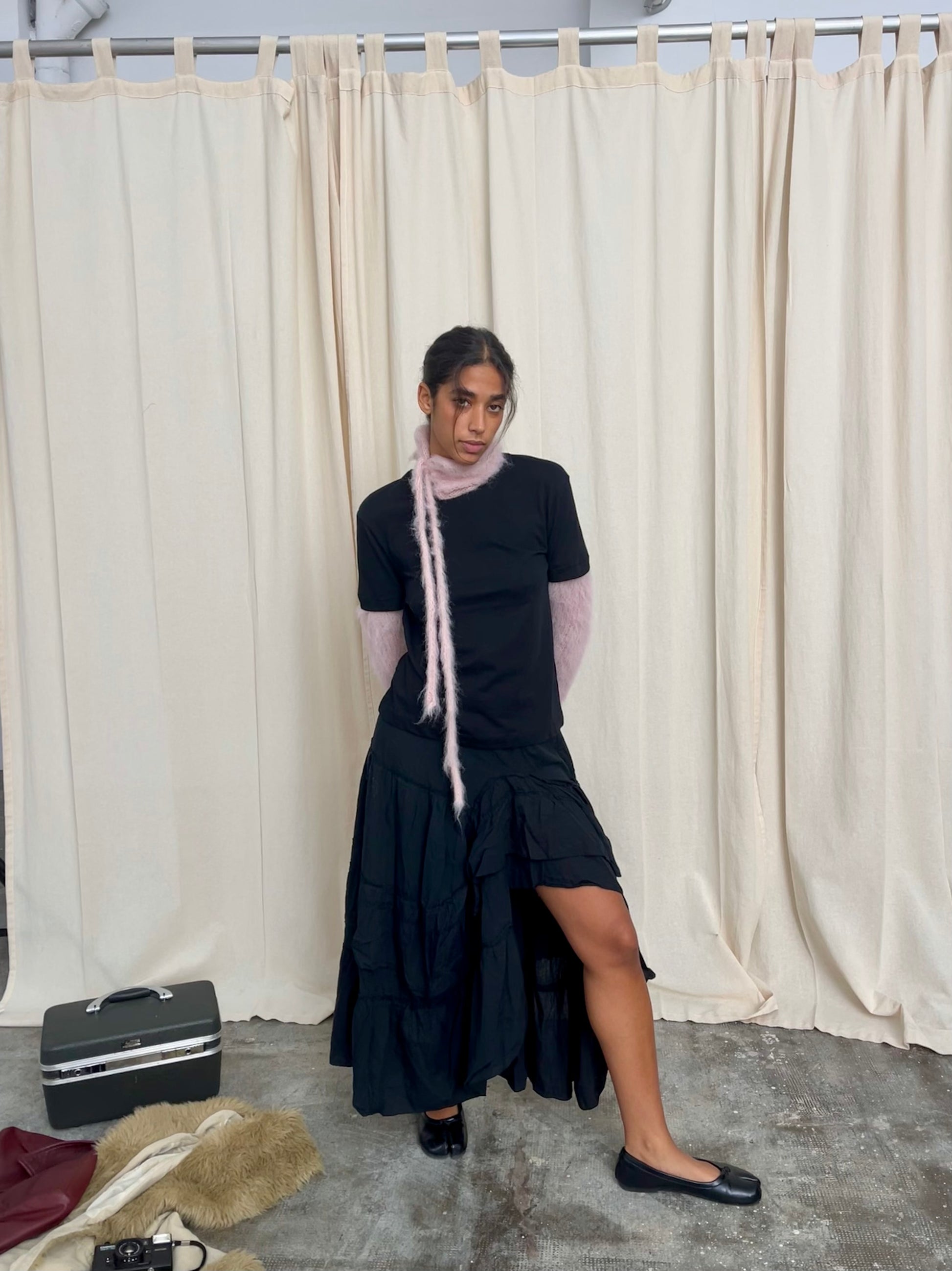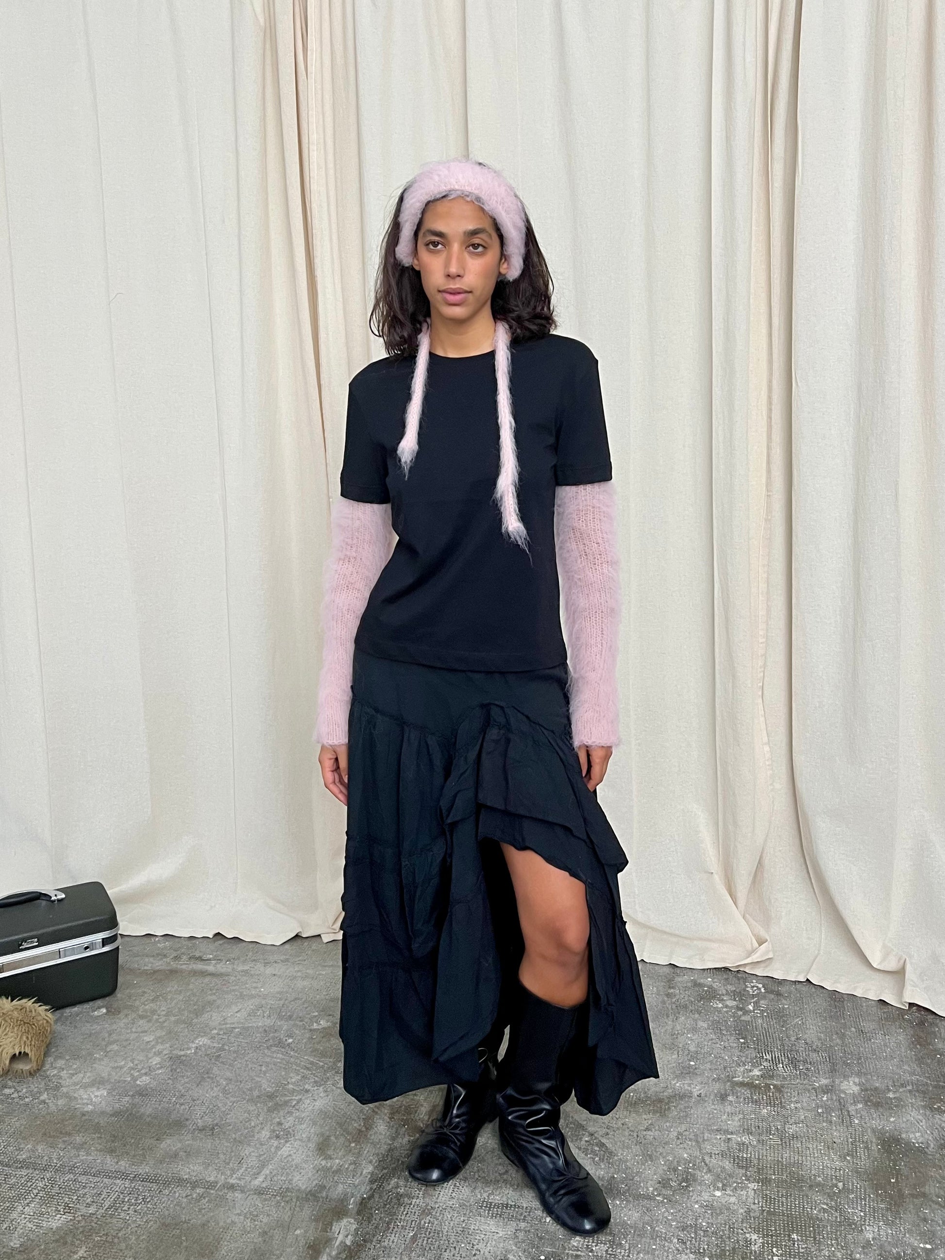 Cotton T-shirt with sleeves and collar made of synthetic and plant-based wool fibers, specially designed for sensitive skin. The collar is separate and can also be worn as a fleece.